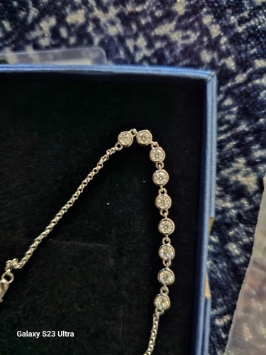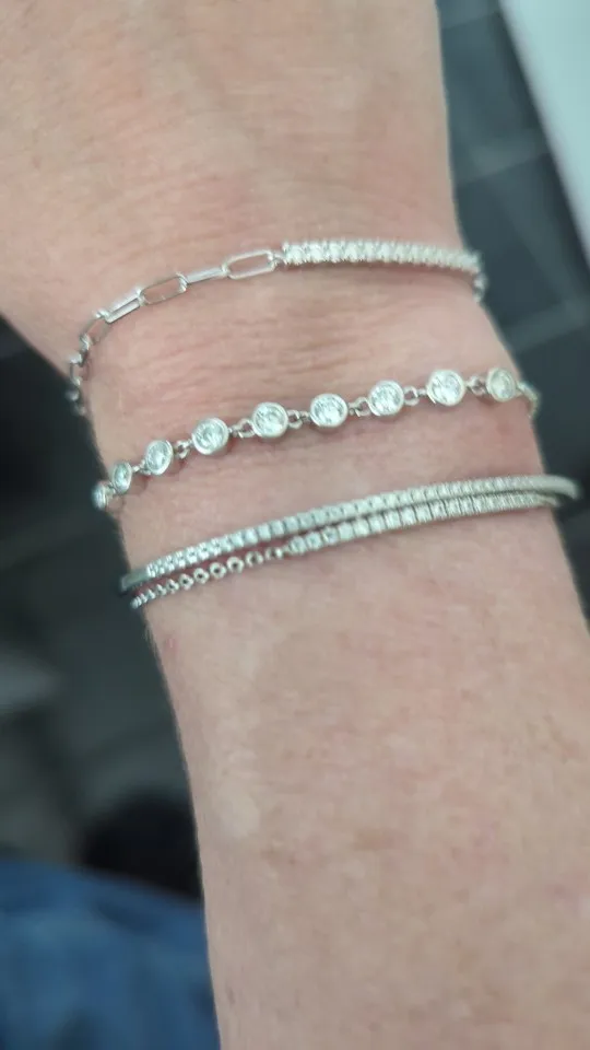Made to drape the wrist in shimmering beauty, this moissanite bracelet shines with modern refinement.