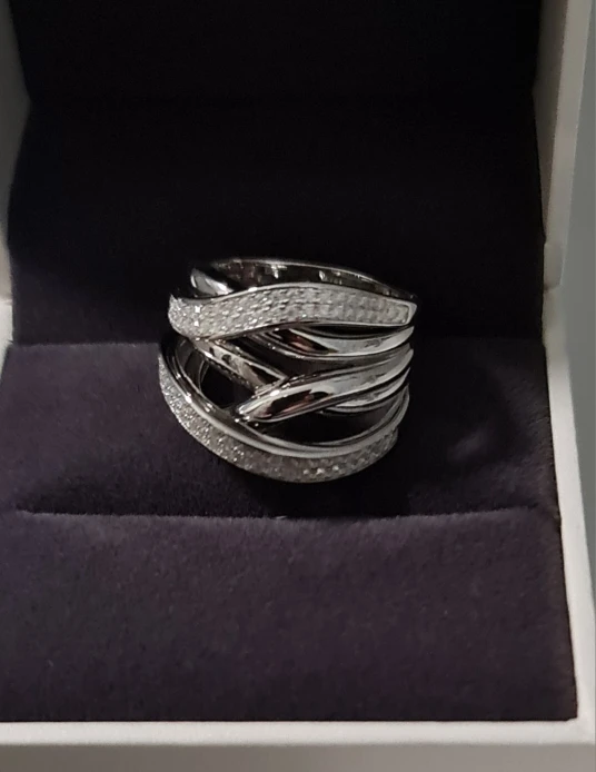 Diamond Crossover Moissanite Ring